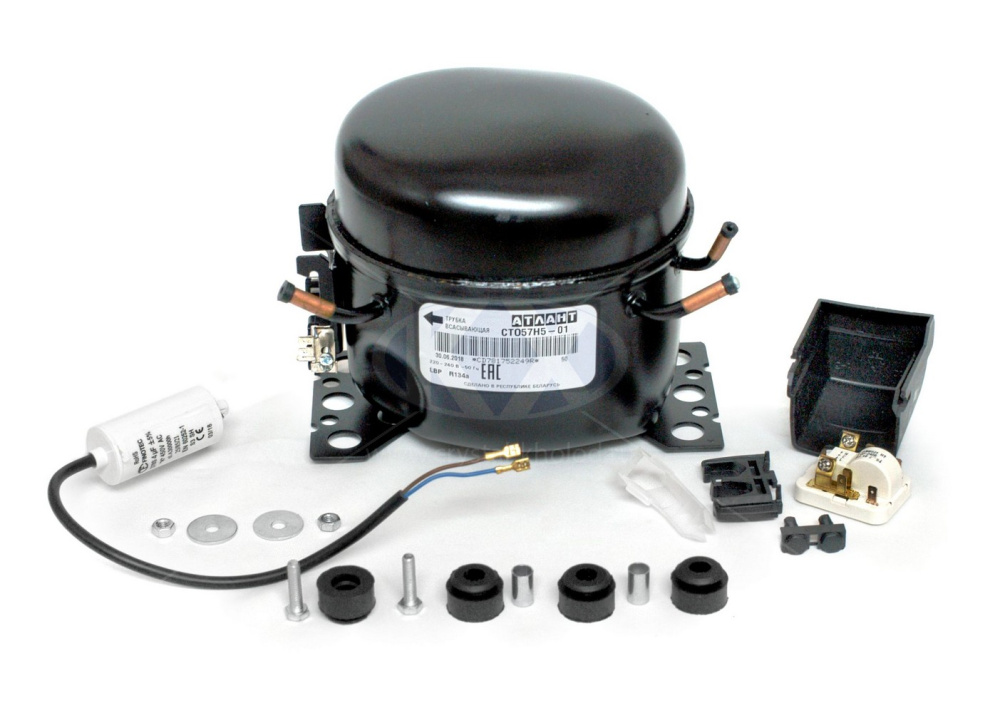 Низкотемпературный компрессор СКо140 производства ЗАО «Атлант» (Белоруссия) используется в холодильниках бытового назначения. Компрессор имеет медную обмотку и работает на R-134 фреоне. Мощность СКо140 - 157Вт при температуре: -23,3°C. В комплект входит реле пускозащитное РКТ-2. Компрессор упакован в фирменную коробку.
